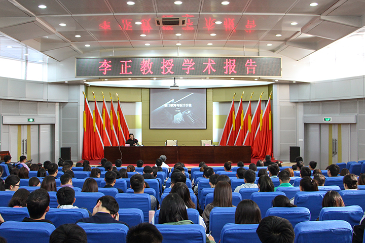 在报告中,李正从四个方面阐述了对当代中国高校设计教育与设计价值的思考。他认为,作为设计学的师生,必需要有专业学习自觉性,了解学科发展的来龙去脉,关注学科发展动态;他主张设计教育要借官方平台融入主流,做到“巧在借力,能在独特”、注意“乱在无定,忙在无序”、懂得“败在半懂,成在谋划”;他在谈到设计学习的方法中指出不仅应该在设计技能上熟能生巧,更要在设计综合领域见多识广,勤奋虚心,多参与横向交流,重视奖项;在创作方面,要有文化自信,充分了解民族的传统文化,也要注重产学研的结合,在理论与实践的结合中提高自己的创新能力和实践能力;他强调了设计价值,尤其是精神价值的重要性,并认为只有蕴含精神价值的设计才能为人们所铭记。