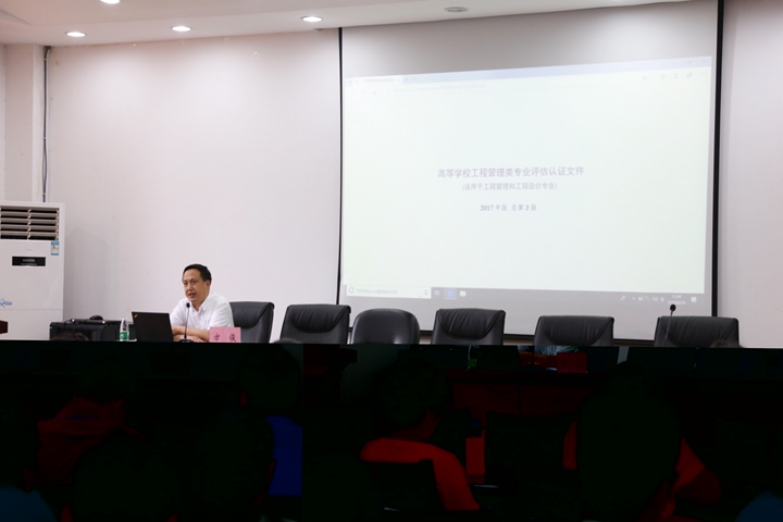 6月26日下午,土木工程学院特邀武汉理工大学教授方俊在该院一楼学术报告厅召开高等学校工程管理类专业评估认证学术报告会,报告会由该院副院长余永强主持,该院全体教职工聆听了报告会。