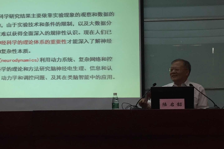 在《脑科学和智能科学的一些动力学问题》的报告中,陆启韶介绍了生物神经系统、中国脑研究计划、神经动力学等,列举了无混沌的加同期簇放电序列、帕金森模型等例子,表明了数学思想应用在研究过程中的重要性。陆启韶在脑神经系统的生理结构和电生理活动的基础上,对神经动力学的一些问题,包括神经元及其网络的建模和放电特性分析、神经信息编码、脑认知功能和疾病异常现象等作了简要介绍。在《非线性科学和复杂系统》的报告中,陆启韶介绍了非线性科学当前发展、学科优势,以及主要思想、作用和研究内容等基本知识,并举例对研究内容中分岔、混沌、时空斑图等作出细致讲述。随后他又介绍复杂系统的基本概念以及网络系统和生命系统中的复杂问题。最后回顾了非线性和复杂性科学的发展史,展望其未来的发展空间。