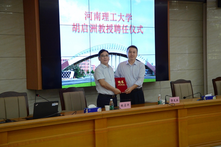 6月7日,南京理工大学教授胡启洲受聘仪式暨学术报告会在能源学院院楼104学术报告厅举行,能源学院院长郭文兵参加受聘仪式并为胡启洲颁发聘书,该院15级交通工程师生参加仪式并聆听报告。仪式由能源学院副院长刘少伟主持。