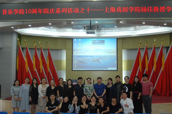 为庆祝建院十周年,5月12日上午,音乐学院在力行楼学术报告厅举办院庆系列活动之十——邀请上海戏剧学院教授杨佳莅临我校举行音乐学术讲座。我校近百名师生聆听了此次讲座。