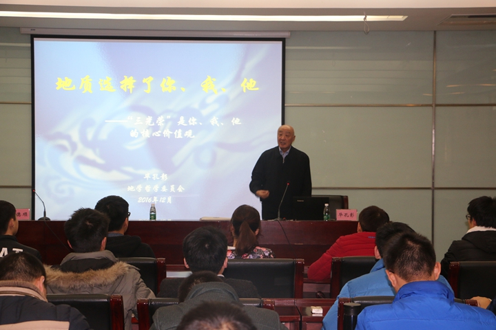 12月6日下午,由全国地学哲学委员会举办的“地学哲学进校园系列讲座”活动在我校明德楼方形报告厅举行。应我校之邀,毕孔彰教授和林芳博士为我校地质专业师生作了题为《地学哲学与地质人的家国情怀》《地质选择了你、我、他》《阶梯式发展理论与中国地质教育历程》的学术报告。报告会由资环学院副院长郑德顺主持。