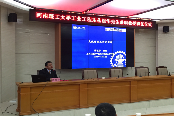 11月26日,上海交通大学教授蒋祖华莅临我校,在能源学院104学术报告厅与201会议室分别作了题为《工业工程的研究热点及应用》与《研究工作中的创新点探索及其表达》的学术报告。报告会由该院副院长杨玉中主持。