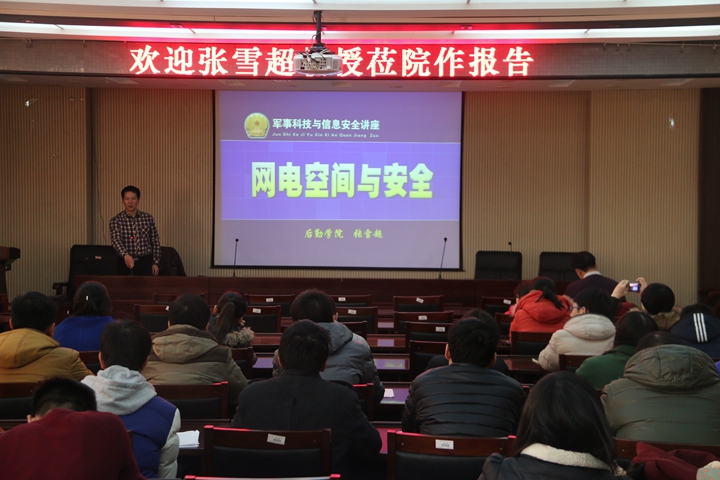 12月30日下午,中国人民解放军后勤学院教授张雪超应计算机学院之邀莅临我校,在计算机学院201会议室作了题为《网电空间与安全》的学术报告。报告会由该院副院长杨立身主持,全院100余名师生聆听了报告。