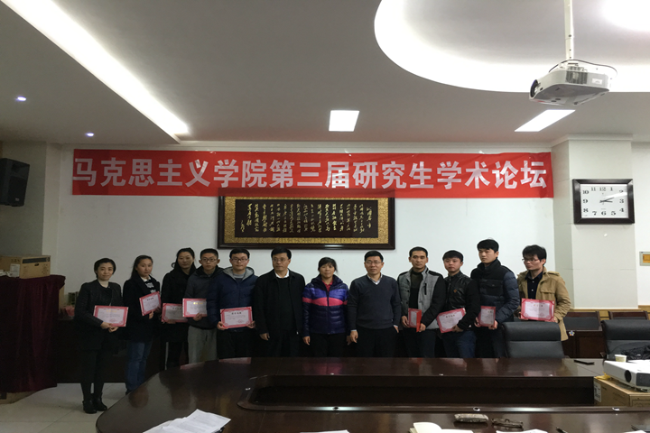 本次研究生学术论坛在继承上两届论坛良好经验的基础上有了新的突破,参与论坛的研究生从暑假就开始筹备论文,在导师们的精心指导下不断完善,立足现实问题,围绕论文主题进行了理论探索。本次论坛共收稿20篇,经专家评审,评出一等奖1篇、二等奖3篇、三等奖5篇。论坛开始前,评委老师给获奖研究生颁发了荣誉证书并合影留念。