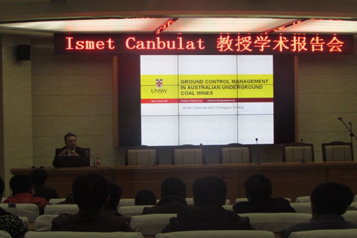 报告会上,伊斯梅特简要说明了澳大利亚煤田分布情况,介绍了南威尔士大学采矿工程学院在矿井开采技术、煤巷支护及安全保护与环境管理等方面的研究进展。他从自身多年科研经验出发,采用大量实例说明了自己在采矿方面的研究成果。
