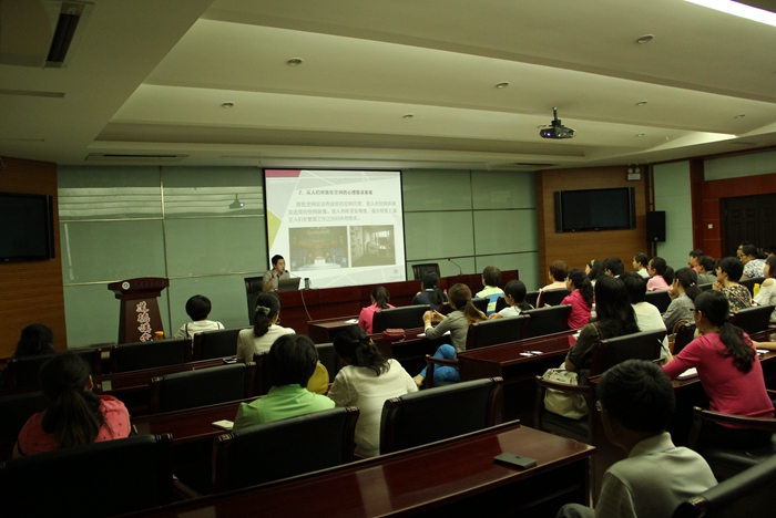 6月25日下午,应校女工委、性别与发展研究中心、女教职工俱乐部之邀, 建筑与艺术设计学院环境设计系主任王维天在明德楼一楼会议室作了题为《家居空间装饰与陈设》的主题讲座。40余名女教职工聆听了讲座。
