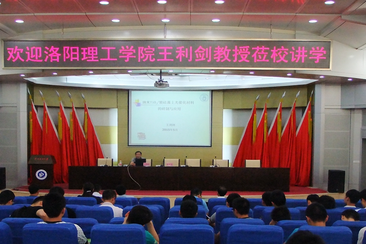 5月30日下午,洛阳理工学院教授王利剑应材料学院邀请莅临我校,在力行楼学术报告厅作了题为《纳米二氧化钛/精硅藻土光催化材料的研制与应用》的学术报告。材料学院百余名师生聆听了报告,报告由该院副院长张传祥主持。