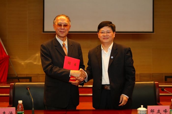 校长邹友峰为王声涌教授颁发聘书