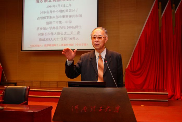 王声湧的报告首先介绍了暴力恐怖袭击常规手段,暴力恐怖袭击非常规手段、网络恐怖、近年来暴力恐怖袭击事件、恐怖袭击的人地时。接下来他详细阐述了校园安全的范围、校园突发事件的分级、校园的主要安全问题、学校的应急组织、在遭遇暴力恐怖袭击时自救的三个准则。