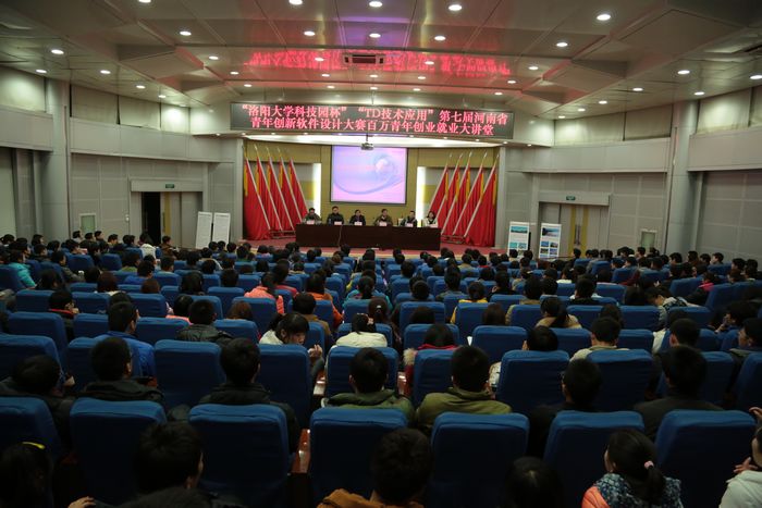 3月4日晚,由校团委主办、计算机学院承办的“洛阳科技园杯”“TD技术应用”第七届河南省青年创新软件设计大赛百万青年创业就业大讲堂在我校力行楼学术报告厅举行。计算机学院院长贾宗璞、郑州轻工业学院计算机学院院长甘勇、河南省863软件孵化器有限公司总工程师张彤、南阳师范学院讲师刘长旺以及河南省青年创新软件设计大赛组委会办公室负责人李丹参加讲座。讲座由校团委副书记阎俊豪主持。