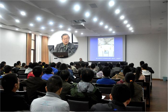 报告会上,周丰峻首先就岩土工程、防护工程、防灾救灾工程、救灾结构工程和工程反恐袭击五个问题的前沿信息和最新研究作出了详细介绍。周丰峻以欧美当代地下洞室工程的大跨度、多功能为切入点,介绍了国外地下工程的前沿发展,援引实例讲解了岩土滑坡泥石流原位加固治理技术与网架结构,并强调科学研究应注重走创新发展之路,科技创新活动应在科学研究实践中探索。最后,周丰峻提出了自己对青年学子的要求,希望大家要勤于思考,善于归纳,勇于正视困难,坚持创新,攀登科技高峰。在大家阵阵热烈的掌声中,本次报告会也落下了帷幕。