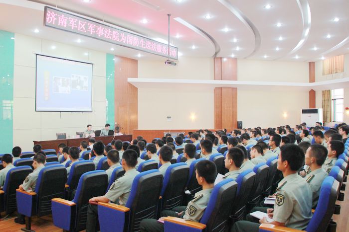 6月4日下午,济南军区“送法进高校”报告团莅临我校,在经管楼学术报告厅作普法宣传报告。报告由济南军区直属法院院长刘卫国上校主讲,济南军区直属法院中校李汝军、学校后备军官学院及驻校选培办相关部门领导、我校全体国防生和部分在校生一起聆听了报告。报告会由后备军官学院党委副书记王立东主持。