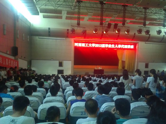 为使我校2013届毕业生详细了解国家择业就业政策,免除毕业后人事档案托管和户口迁移等方面的后顾之忧,解决毕业生在择业就业中遇到的人事方面的有关问题,5月21日上午,焦作市人力资源和社会保障局主任靳刚受邀在我校南校区小礼堂做了一场人事代理公益性专题讲座,我校毕业班辅导员及2013届毕业生1000余人聆听了此次讲座。