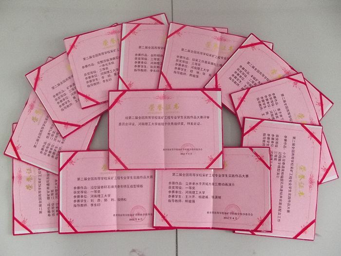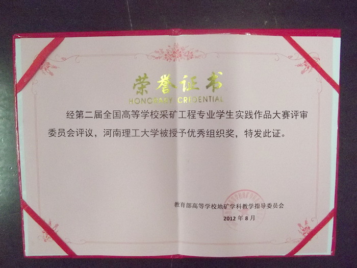 继我校在2010年首届采矿实践作品大赛中取得优异成绩之后,今年喜讯再度传来,在第二届大赛中,我校成绩喜人。采矿工程专业选送的11件优秀作品在来自全国21所高校采矿工程专业学生提交的150多件实践作品之中脱颖而出,取得了优异的成绩。