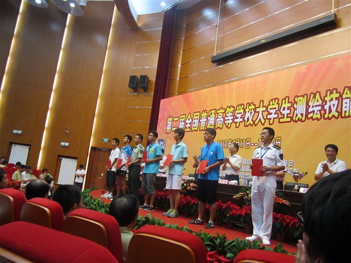 本次比赛得到校院领导高度重视。我校代表队组成了由测绘学院党委书记王晓梅、副院长袁占良为领队,李长春、李胜余和齐修东三位老师为指导老师,共计五位参赛队员的队伍。比赛中,参赛队员沉着冷静、稳定发挥,最终获得四等水准测量一等奖、一级电磁波测距导线测量一等奖、数字测图三等奖和团体二等奖的好成绩。此外,我校李长春老师荣获“优秀指导教师”荣誉称号。