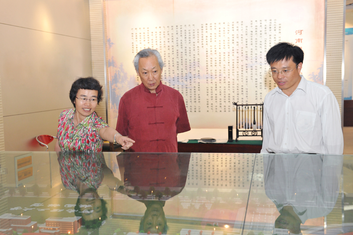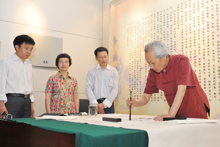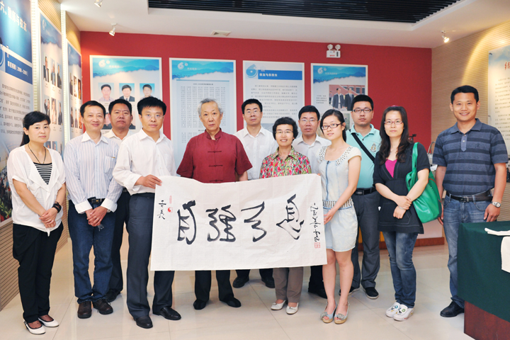 5月11日上午,马教授参观了我校校史馆,并挥毫题写了反映我校办学精神等内容的五幅作品,让人们感受到了马先生创立的“易道书法”所独有的“似反非反”的艺术魅力。在随后举行的座谈会上,马宝善先生与我校马克思主义学院部分教师亲切交流。大家围绕“无极”、“太极”、“混沌”等概念以及易经与占卜的关系等问题,展开了深入细致的研讨,与会者兴致盎然,讨论会别开生面,马先生清晰而深刻的剖析让老师们豁然开朗、受益匪浅。