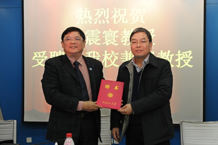 3月2日上午,学校在北校区学术报告厅举行仪式,聘任河南省安全生产监管局煤监办常务副主任李震寰为兼职教授。副校长张战营为李震寰教授颁发聘书并赠送校徽,并代表学校对李震寰教授接受聘任表示感谢和祝贺。李震寰教授为参加河南省2012年第一期煤矿正职矿长培训班的学员做了开班讲座。聘任仪式由安培学院院长李德海教授主持。