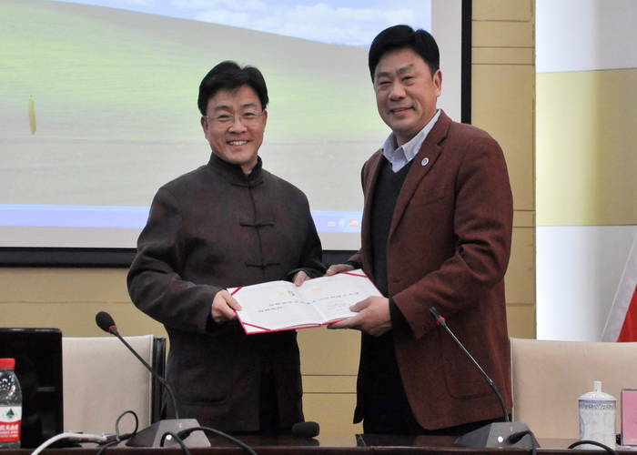 报告会开始前,我校副校长张锟为侯泉林教授颁发聘书,聘任侯泉林教授为我校特聘教授。