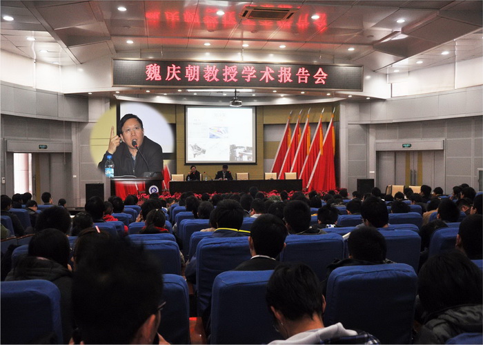 报告会上,魏庆朝教授以磁浮铁路分类的各种标准为切入点,向与会师生翔实介绍了直线电机的工作原理、运行特点等轨道交通建设的基础知识。随后,他对轨道交通的四大系统和三大技术做了翔实介绍,并根据世界铁路发展历程,将轨道交通建设与发展分为五个时期。他结合世界铁路发展的不同阶段,对磁浮铁路建设与发展做了阐释。他指出,磁浮铁路建设与发展在不同的阶段有着不同的特点,同样也遇到了各种限制性因素和问题。他还结合铁路初创期的停滞不前、现代的铁路建设大发展和新世纪的铁路建设技术的成熟,大胆的对铁路建设与发展做出了“直线电机必将广泛应用于磁浮铁路时代”的预言。接着,魏庆朝教授就磁浮铁路系统的发展进行了详细阐释说明,他强调,线桥隧站和导轨制式各有特点,其结构形式及技术标准也各不相同,尤其是磁浮铁路与普通铁路在站点和导轨建设方面差异极为明显。最后,魏庆朝教授认真回答了与会师生的提问,并向土木学院赠送了三本学术专著。