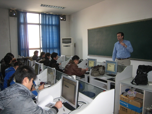 该项目负责人Eric Hagley实践在线英语教育项目已达10余年。他对我校大学英语教师教学水平给予了高度的评价。在与学生的座谈会上,Eric详细介绍了在线英语教育项目的意义和与之相关的操作。随后,他与同学们进行互动交流,并就同学们提出的问题进行了认真详细的解答。3月3日下午,Eric与外国语学院教师就有关英语学习在线项目的意义和应用进行了充分的讨论和交流,并认真听取了一些富有改进性的意见建议。