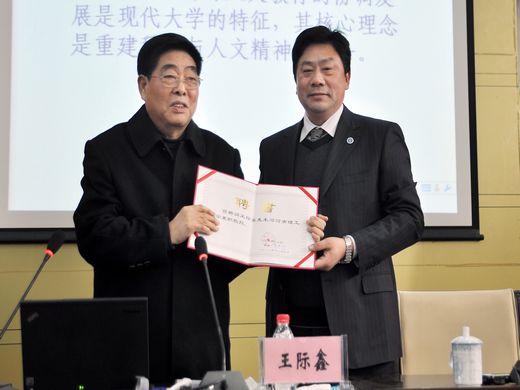 副校长张锟为王际鑫先生颁发兼职教授聘书