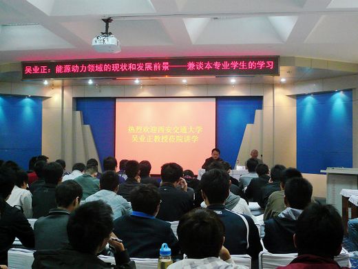 西安交通大学吴业正教授于10月19日下午、20日晚,分别在我校万方科技学院和南校区圆形报告厅作了题为“能源动力领域的现状和发展前景——兼谈本专业学生的学习”的报告。