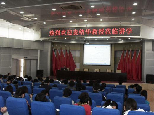报告会上,麦教授的渊博知识和风趣语言给大家留下了深刻的印象。他介绍到,混沌现象无处不在,气象学中的蝴蝶效应,生态学上的虫口方程,天体运动中出现混沌,量子力学中出现混沌,宏观经济和微观经济在运行中出现混沌,医学中出现混沌。即使是简单而有序的运动系统,随着时间的衍变,也经常会出现混沌。最后,麦教授还介绍了国内外混沌方向的发展状况,结合自己的经历鼓励大家,要培养做研究的意识,认识到最基础课程的重要性,打好数学基础。