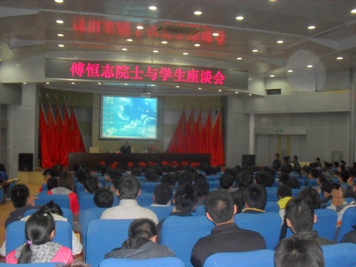 在近两个小时的交流中,傅恒志对学生提出的我国大飞机发展难题、传统材料在新时期的发展、青年时代的人生追求、工科人才应具备的素质等问题一一作了睿智而富有哲理的解答,尽显教育大师风范。他以真诚质朴的情感、丰富的人生阅历、严谨的学者风范和乐观豁达的人生态度赢得了在场师生的热烈的掌声。最后,他希望大家要培养“基础要扎实,工作要踏实,作风要朴实”的三实作风,努力奋斗,为民族、国家和人民做出自己的贡献。