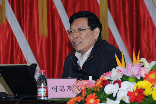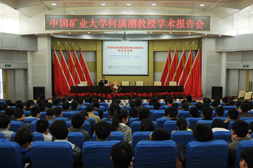 何满潮长期从事深部岩体力学及其工程灾害控制、软岩工程力学、高边坡稳定性控制及其滑坡预测预报等方面的教学科研工作。他把工程地质学与工程力学相结合,致力于煤矿软岩工程问题的理论研究和工程实践,在软岩巷道工程、露天矿软岩边坡工程以及地热工程研究等方面取得了突出成绩。在学术报告中,何满潮教授从深部开采巷道破坏严重性、深部工程破坏原因入手,讲述了深部热环境分布及其热害现状,细致阐述了我国结合煤矿生产工艺系统特点研发的深部软岩巷道热害控制降温(HEMS)系统、深部热害排出及利用低碳生产技术系统的工作原理和工作流程,并对照“主要技术经济指标与国内外对比”介绍了我国深部软岩工程大变形破坏模式及对策,系统总结和深入分析了软岩工程与深部灾害控制研究新进展。