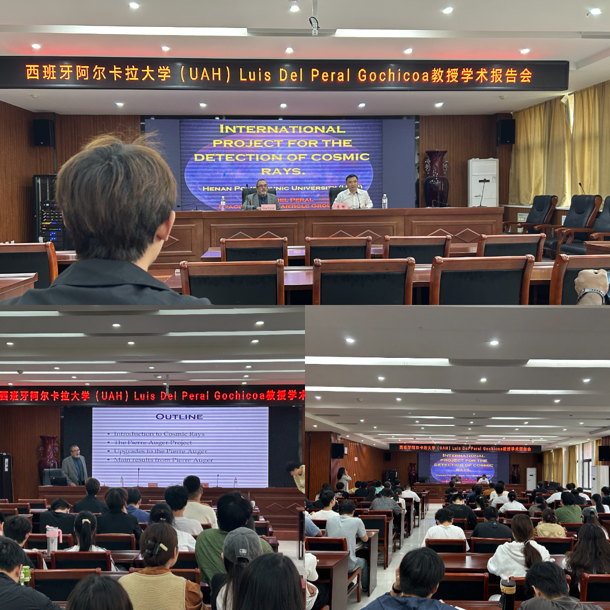 本网讯(通讯员 王俊君)为追踪空间物理与天体粒子研究前沿、拓展国际学术视野,9月29日下午,物理与电子信息学院特邀西班牙阿尔卡拉大学原子物理与核物理终身教授、国际知名天体粒子物理学家Luis Del Peral Gochicoa先生在院楼226会议室作题为“The Pierre Auger International Project for the Detection of Cosmic Rays”的学术报告。副院长李辉主持报告会,近百名师生到场聆听。