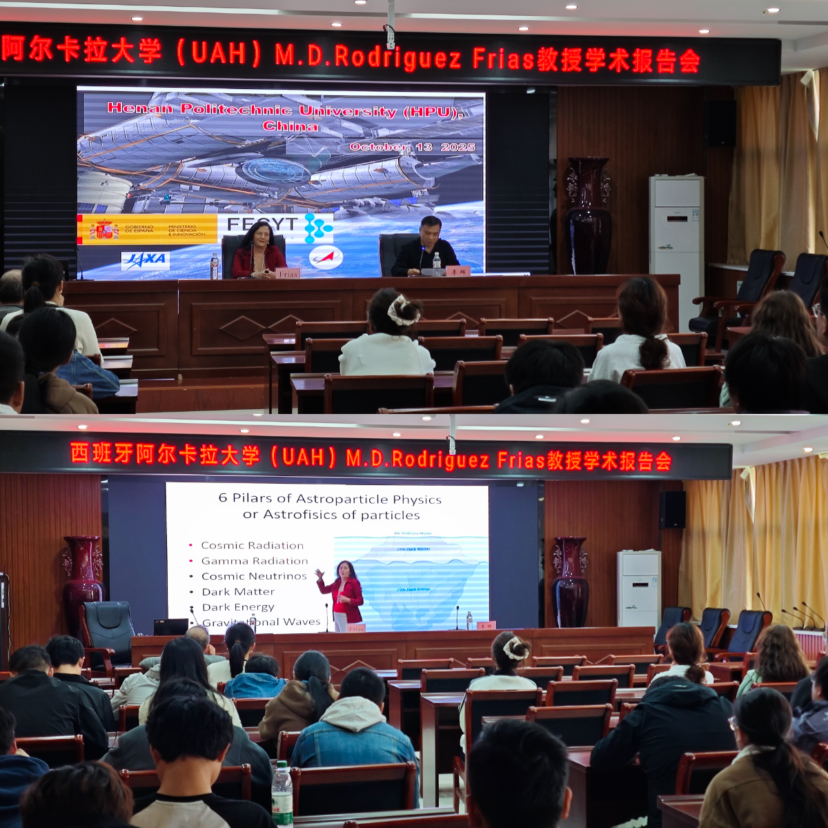 本网讯(通讯员 王俊君)为拓展师生国际视野,深耕天体粒子物理前沿领域,10月13日下午,物理与电子信息学院特邀西班牙阿尔卡拉大学(UAH)原子物理与核物理终身教授M. D. Rodríguez Frías在院楼226会议室作题为“Cosmic radiation coming from the outer space”的学术报告。副院长李辉主持讲座,近百名师生到场聆听。