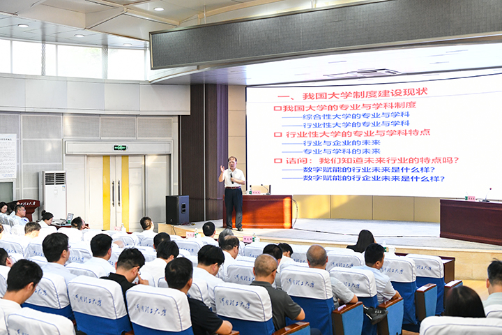 邬大光作题为“学科与专业调整-从经验到制度再到文化”的专题报告。报告以如何建成教育强国为出发点,围绕“跳出教育看教育”思想,探讨我国学科与专业制度建设的现状,分析我国普通高校学科专业设置的基本问题,并结合世界一流大学学科专业治理的组织、专业和经费三个视角,重点探究如何推动有组织的学科专业建设,针对学校现有学科专业建设和优化情况提出了宝贵意见。