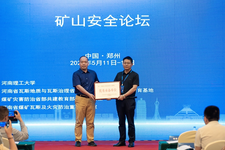 本网讯(通讯员 霍静娟)在“5·12全国防灾减灾日”到来之际,由河南省安全生产和职业健康协会主办、河南理工大学等相关单位承办的2024中国中部(郑州)防灾减灾与应急科学技术大会于5月11日-13日在河南省黄河迎宾馆会议中心举行。本次论坛持续2天,以“智慧应急与安全发展”为题,设“主会场、分论坛”两大板块,安全学院承办“矿山安全论坛”,并获得“优秀承办单位”荣誉称号。