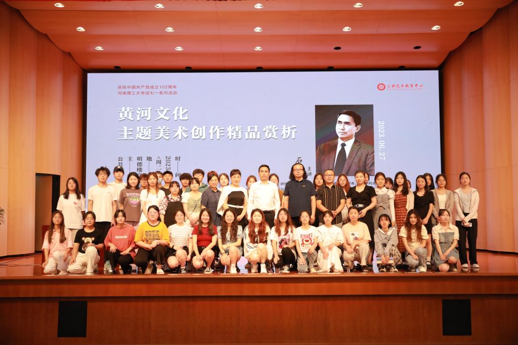 本网讯(通讯员 刘璐)为庆祝中国共产党成立102周年,同时提升我校大学生的艺术审美和综合素养,进一步了解黄河及黄河题材的艺术作品,继承弘扬黄河精神,6月27日下午,教务处(公共艺术教育中心)特邀郑州美术学院院长石品教授在明德楼音乐厅作题为“丹青铸魂——黄河文化题材中的美术精品赏析”主题报告。各学院教师和学生聆听了报告会,报告会由校公共艺术教育中心主任孙娟主持。