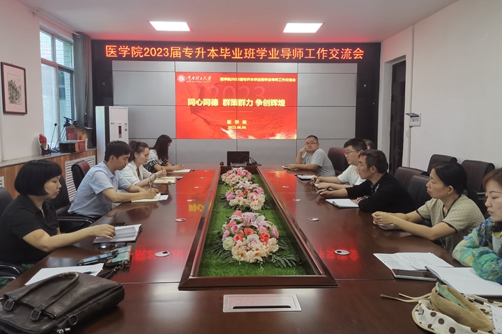 本网讯 (通讯员 王祖洸)为进一步推进学业导师工作实效化、规范化、科学化,加强学业导师管理,提高学业及就业指导质量,6月6日,医学院党委书记张向锋主持召开了以“同心同德 群策群力 争创辉煌”为主题的学业导师工作交流会,21级护理及药学全体专升本学业导师参加会议。