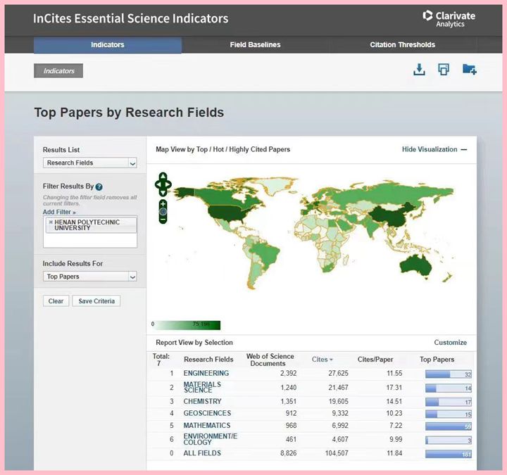 资源环境学院在学校的大力支持和全院师生的共同努力下,不断加强学科和专业建设,积极引导教师在环境/生态领域期刊发表高水平学术论文,不断提升科研论文的水平和质量。本次ESI统计数据显示,我校环境/生态学学科共发表SCI论文461篇,被引次数4607次,篇均被引9.9次。