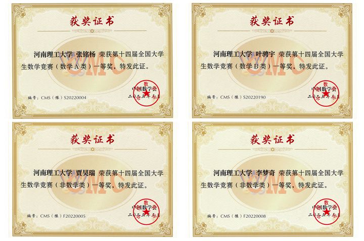 在前期数信学院的精心准备基础上,第十四届全国大学生数学竞赛初赛(第二批)于3月4日在我校举行,河南赛区复赛于3月18日在洛阳师范学院举行。本次竞赛初赛我校共有532名同学参加,含专业组(A\B)49人,非专业组483人。经过初赛和复赛激烈角逐,我校获奖学生中,数信学院2021级数学实验班张铭杨同学在专业A组以全省第四名的成绩入围国家决赛,数信学院2020级叶骋宇(专业B组)、安全学院2020级贾昊瑞(非专业组)、电气学院2020级李梦奇(非专业组)等3名同学同时入围国家决赛,取得我校近十年来最好成绩。