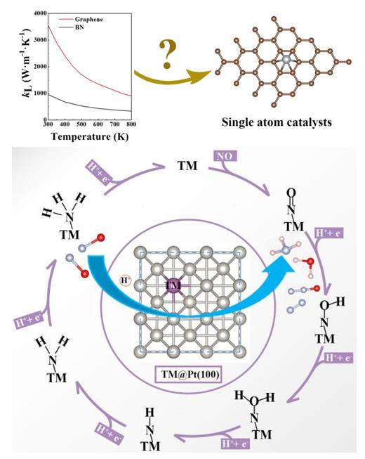 此外,该课题组还将在化学领域Top期刊《中国化学快报》(《Chinese Chemical Letters》)(中科院一区,影响因子:8.455)发表题为《单原子催化剂的形成与晶格热导率之间的关系的第一性原理研究》(《First-principles study of the relationship between the formation of single atom catalysts and lattice thermal conductivity》)的研究成果(已接收)。该成果通过第一性原理计算研究了材料固有性质热导率和催化之间的关系。通过计算二维材料的热导率和过渡金属在其表面的结合能,并对稳定性等进行研究,分析热导率与形成单原子催化剂之间的关系。该工作得到了国家自然科学基金(U2004209,21603109)等项目的资助。