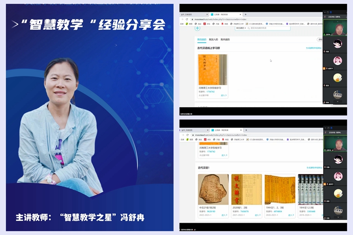 本网讯 (通讯员 刘晶)为提升教师的信息化教学能力,落实《文法学院课堂教学质量提升年专项行动工作方案》,12月6日下午,文法学院在腾讯会议举办了“智慧教学”经验分享会。本次活动由该院副院长曹爽主持,该院“智慧教学之星”冯舒冉主讲,文法学院全体教师参加了分享会。