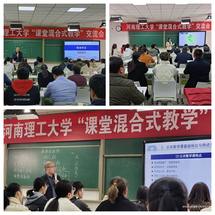 数信学院教师王艳芳首先做“课堂混合式教学”的教学展示。她通过“风云四号”气象卫星探测地球表面引入曲面面积问题,巧妙地将MOOC线上视频与线下讲解在课堂上有机融合,同时将课程思政元素无痕融入,充分利用现代信息技术重塑课堂教学模式,以学生为中心,优化教学组织形式和教学过程,强化师生互动,精彩展示了“课堂混合式”教学设计与实施的总过程。随后,数信学院教学副院长毋海根作了题为《数信学院本科教学改革的思考与探索》的工作报告,从转变数学教师思想观念、公共数学和专业数学教学改革、理科基地建设设想等三个方面,介绍了数信学院在本科教学方面所做的改革与取得的成效。