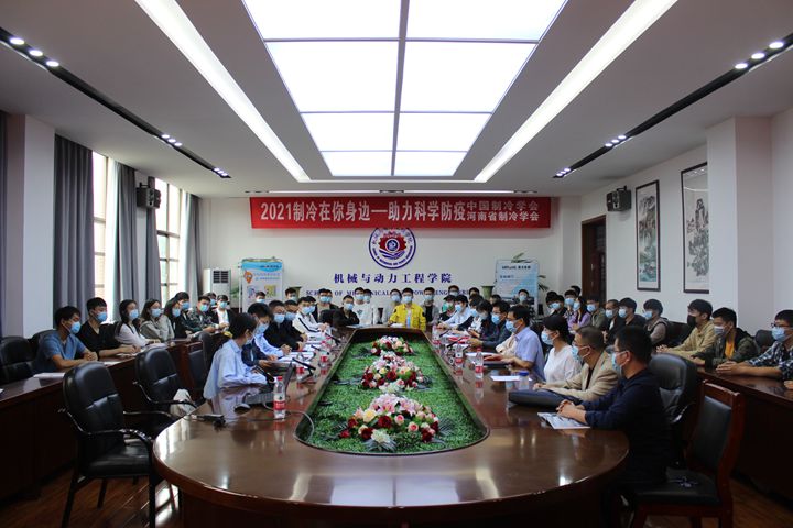 会议以“制冷在你身边,助力科学防疫”为主题,该院能源与动力工程系党支部书记张安超、河南省制冷学会隋继学、美的楼宇科技何长展等分别作了报告或发言。