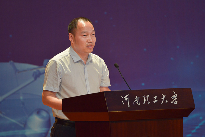 河南省测绘学会测绘教育与科普工作委员会主任委员、战略支援部队信息工程大学地理空间信息学院教科处处长阎晓东致开幕辞