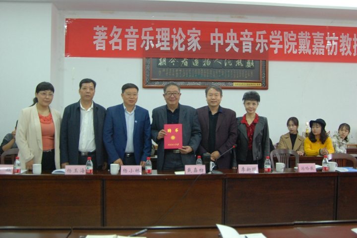 10月15日上午,应音乐学院邀请,著名音乐理论家、中央音乐学院教授戴嘉枋在文综楼101会议室作题为《国家社科基金艺术学项目申报要义》的学术报告。校长杨小林出席,该院部分师生共同聆听了此次讲座。讲座由该院院长李新现主持。