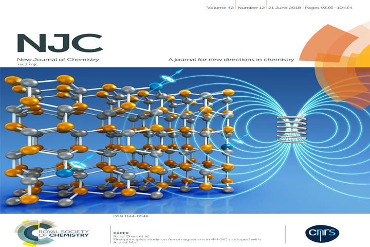 近日,继《材料化学A》,英国皇家化学会期刊再次以封面亮点报道我校“河南省微尺度理论模拟与设计创新团队”的研究进展。此次工作聚焦于碳化硅的磁性调控,发表在《化学新志》,并被以前外封面亮点报道。《化学新志》主要报道化学、材料领域的新方向、新发现,是化学、材料领域颇有影响的期刊之一,最新影响因子3.269。