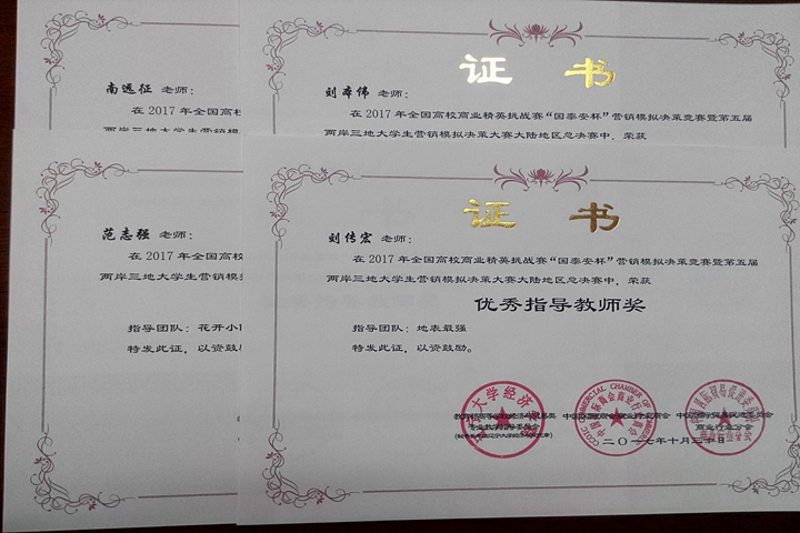 近日,由教育部高等学校经济与贸易类专业教学指导委员会、中国国际商会商业行业商会和中国国际贸易促进委员会商业行业分会主办的2017年全国高校商业精英挑战赛“国泰安杯”流通业经营模拟竞赛与营销模拟决策竞赛总决赛落下帷幕,我校工商学院学子组成的代表队获一等奖5项、二等奖7项、三等奖6项,我校荣获优秀组织奖。