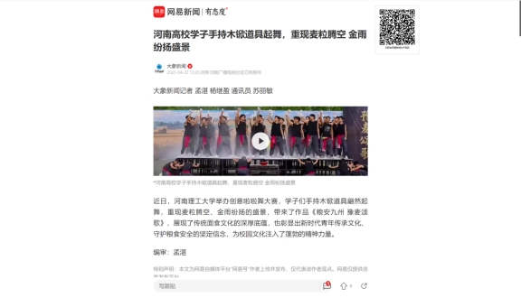 《粮安九州豫麦颂歌》将农耕文明转化为舞蹈语言。定格粮食丰收壮美瞬间,更彰显青年一代守护粮食安全、传承传统文化的坚定决心与历史担当。《非遗里的中国》让化学元素巧妙融入非物质文化遗产,展示出独特的创意和文化融合之美;《追星》以钱学森、黄旭华等科学家的事迹为蓝本,激励青年以科学家为榜样,追逐科学之星,勇攀知识高峰,在校内外,乃至全国媒体引发热烈反响。
