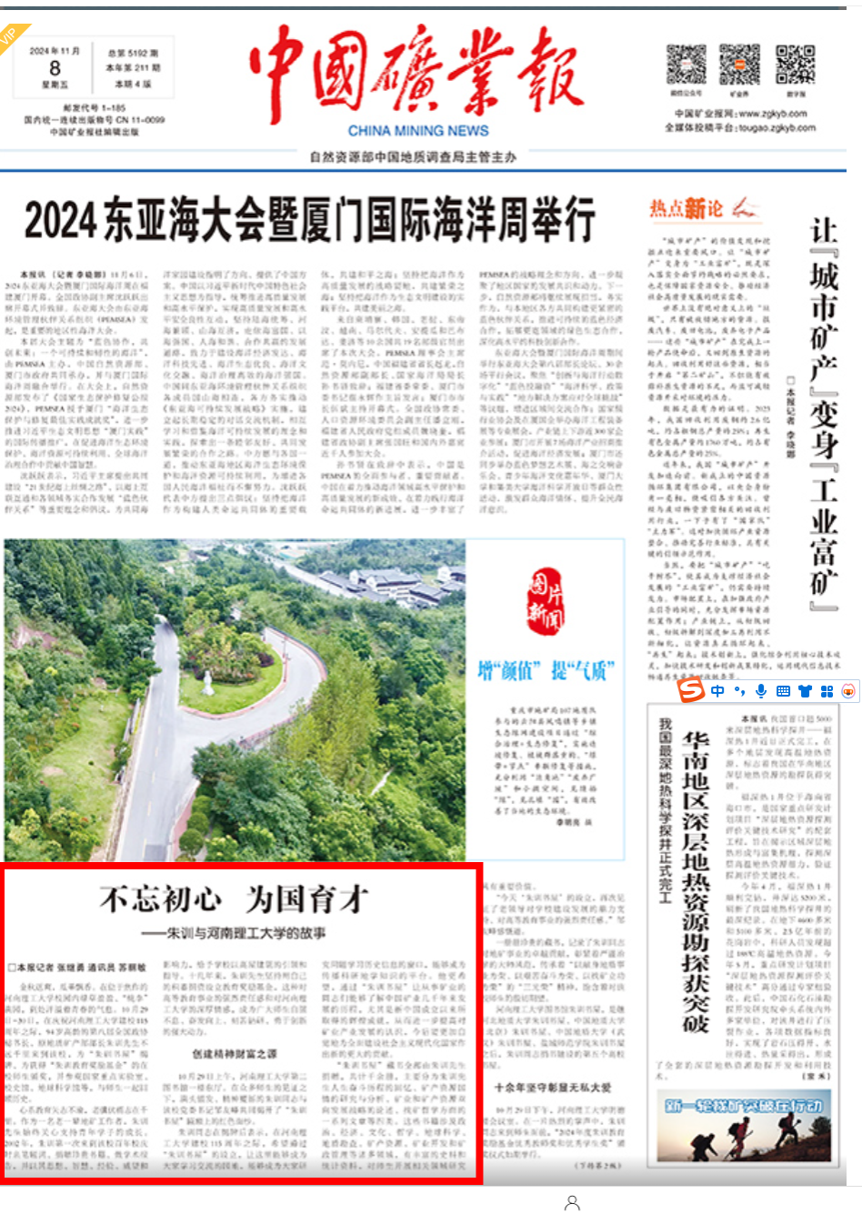 “我之所以在河南理工大学百年校庆的时候在这里设立奖学金,一是爱心助学;二是对地矿事业情有独钟,积极为国家多培养矿业人才。”94岁高龄的朱训先生满怀深情地表示。