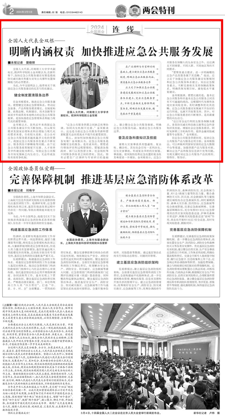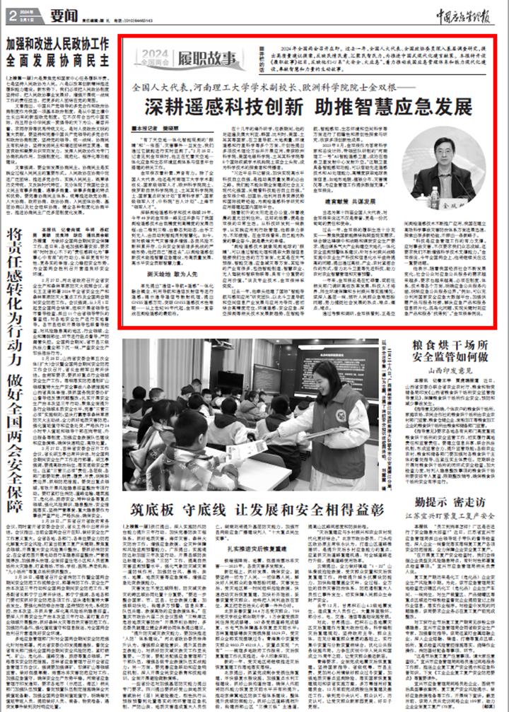2023年以来,金双根立足国家战略发展需求,结合研究领域,将履职步伐和建言角度聚焦在“科技减灾防灾”“应急公共服务”“煤炭转型发展”等领域,一头连着科学决策,一头连着民生实际,通过走进基层、调查研究、研讨交流等,问计问需、出谋划策,汇聚民意、履职尽责,积极为人民解难题,努力为国家谋发展。