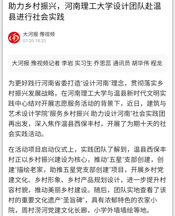 ?助力乡村振兴,河南理工大学设计团队赴温县进行社会实践